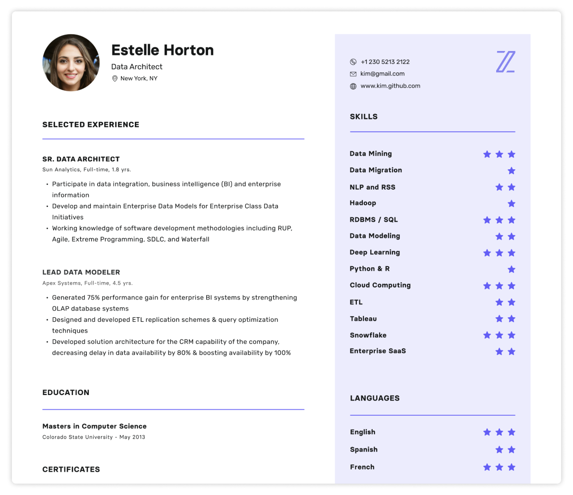Simply populate your professional experience in onboarding, and we’ll automatically build a quick and easy resume for you to feature and market your skills.